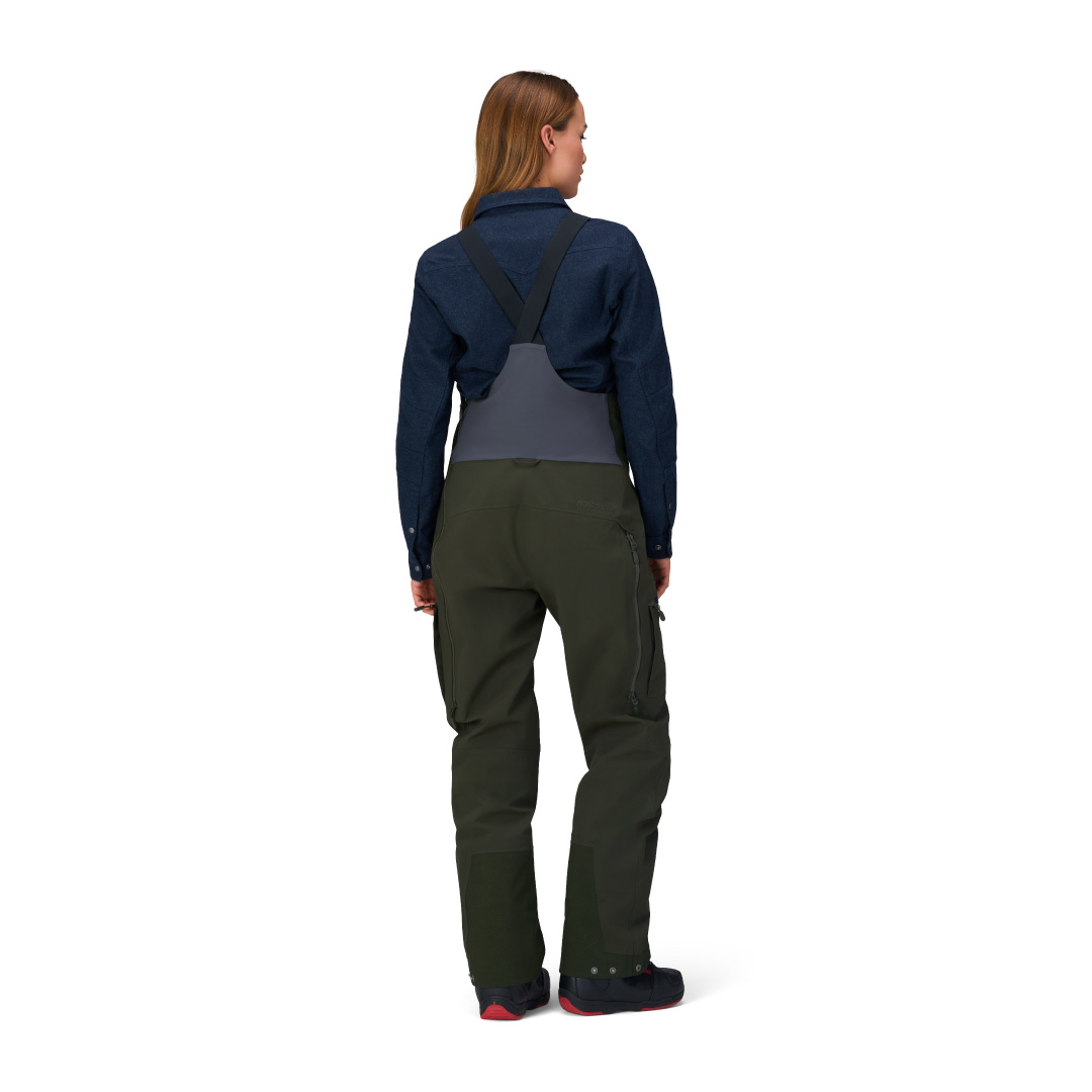 バックカントリーやパウダーライディングにフォーカスしたtamokシリーズのフラッグシップビブが、デザインはそのままに、素材を全面的に変更して生まれ変わりました。新たな素材は、GORE-TEX® ePEメンブレン。GORE-TEX®の長い歴史のなかで、初めてメンブレンそのものを一新。定評ある防水透湿性、防風性、耐久性の高さを維持しつつ、環境負荷の軽減を実現した注目の素材です。3レイヤーの表地は強固で耐久性の高い200デニールの100%リサイクルナイロン。裏地はしなやかなC-KNIT™ナイロンバッカー。メンブレンが変更になった結果、生地は若干薄く軽くなり、履き心地も向上しています。裾のエッジガードには金属ワイヤーの代替として使用されるほどの強度を持つVectran®ファイバーを採用し、エッジやブーツ、バインディングと擦れやすい裾部の耐久性を高めています。左脇から膝までのジッパーが着脱を容易にし、膝とヒップは立体裁断によってハイクアップにストレスを与えません。