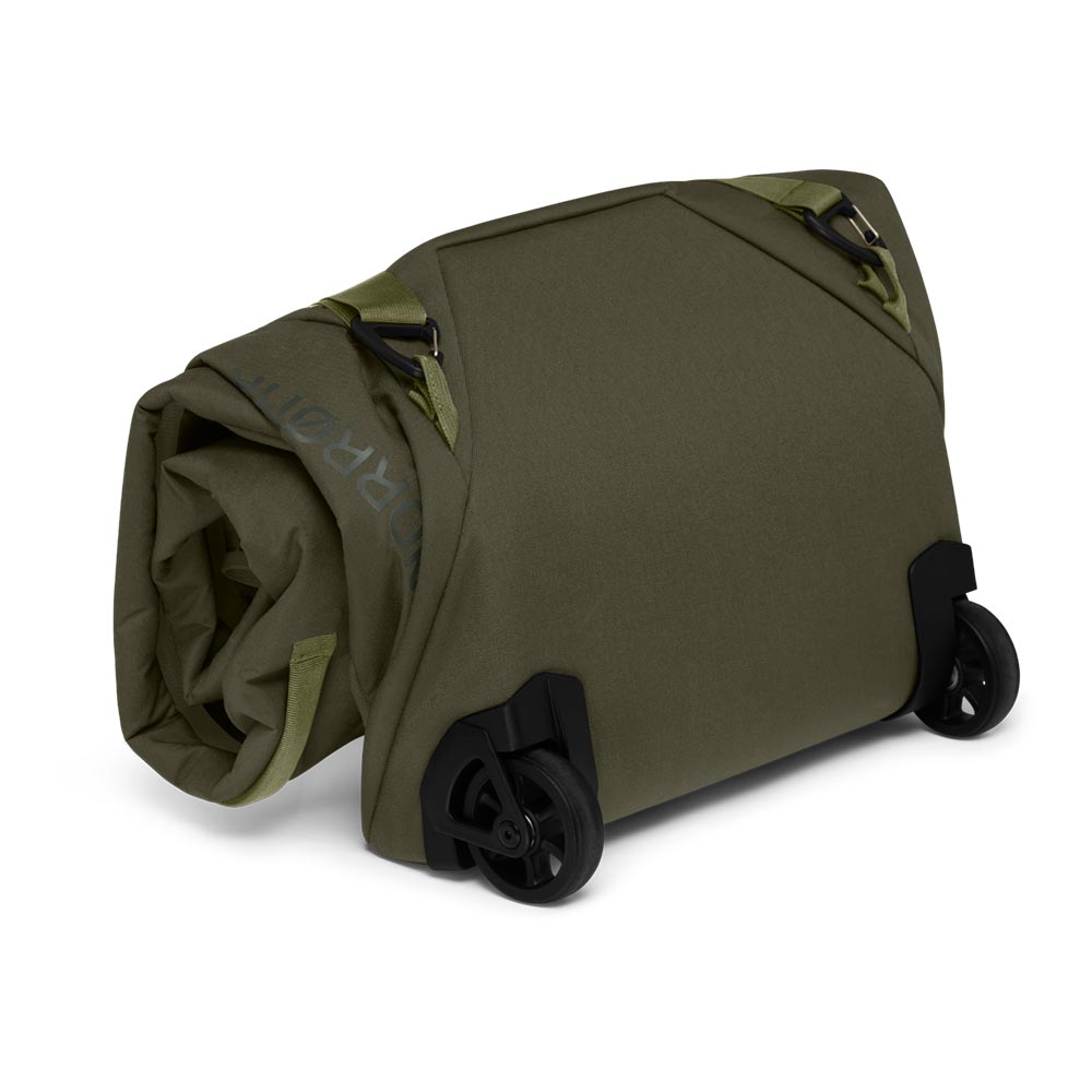携行性と収納性に優れたスキー・スノーボードバッグです。優れたプロテクション性能を持つウィール付きキャリーバッグながら、使用しないときはロールアップしてコンパクトになるため、自宅や旅先のホテル、仲間の家で場所を取りません。素材は漁網や使い古しのカーペットなどの廃棄物から再生された、非常に丈夫なナイロン繊維(ECONYL?)を使用し、メイン部分は500デニール、底部は900デニールで補強されています。また、優れた反発弾性と復元性を持つEVAフォームパッド入りで、大切なギアをしっかり保護。87mmの頑丈なウィールは、凹凸のある地形や雪、泥にも対応します。長さ160cmから200cmのスキーを2本から4本、スノーボードは1本から2本収納可能です。