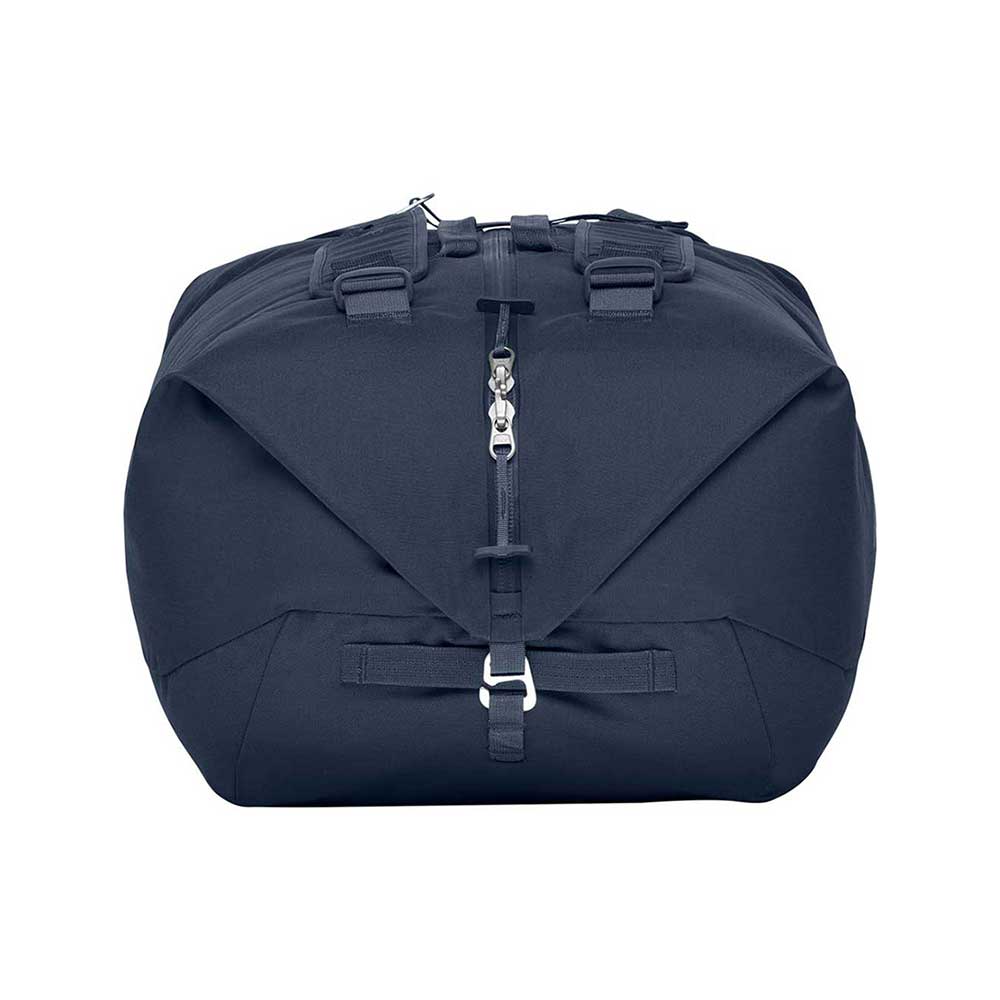 耐久性に優れながら軽量性と収納性を追求したダッフルバックです。メインファブリックには100%廃棄物からリサイクルされた450デニールナイロン生地を用い、ボトムとなる部分は更に頑丈な900デニールナイロンを使用しています。どちらの生地にもPUコーティングが施され耐水圧は2000mmを持っています。調整可能なパッド付きのショルダーストラップとチェストストラップでバックパックとして荷物を簡単に持ち運べ、2つのフロントハンドルに加え、トップハンドルも付いています。また、チェストストラップを使って2本のショルダーストラップを束ねることで、スマートなシングルストラップにすることもできます。T字型のジッパープラーは、手袋やミトンを着用している場合に最適な、より良いグリップを提供します。