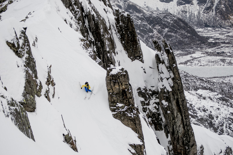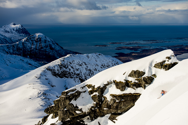 穏やかで湿度が高く、海に近いロケーションであることから、ロフォーテン諸島の雪の状態は、脆い層が地雷のように隠れた状態になるが、それほど難易度が高い雪質ではない。降ったばかりの雪の表面にだけ気を配れば、それほど危険なコースではないとも言える。しかし、雪質は短い距離においていきなり変化するのだ。だから、安全面での注意や、最良の雪面を探す際など、どんな場合でもセスの豊富な知識と経験が頼りになるわけだ。