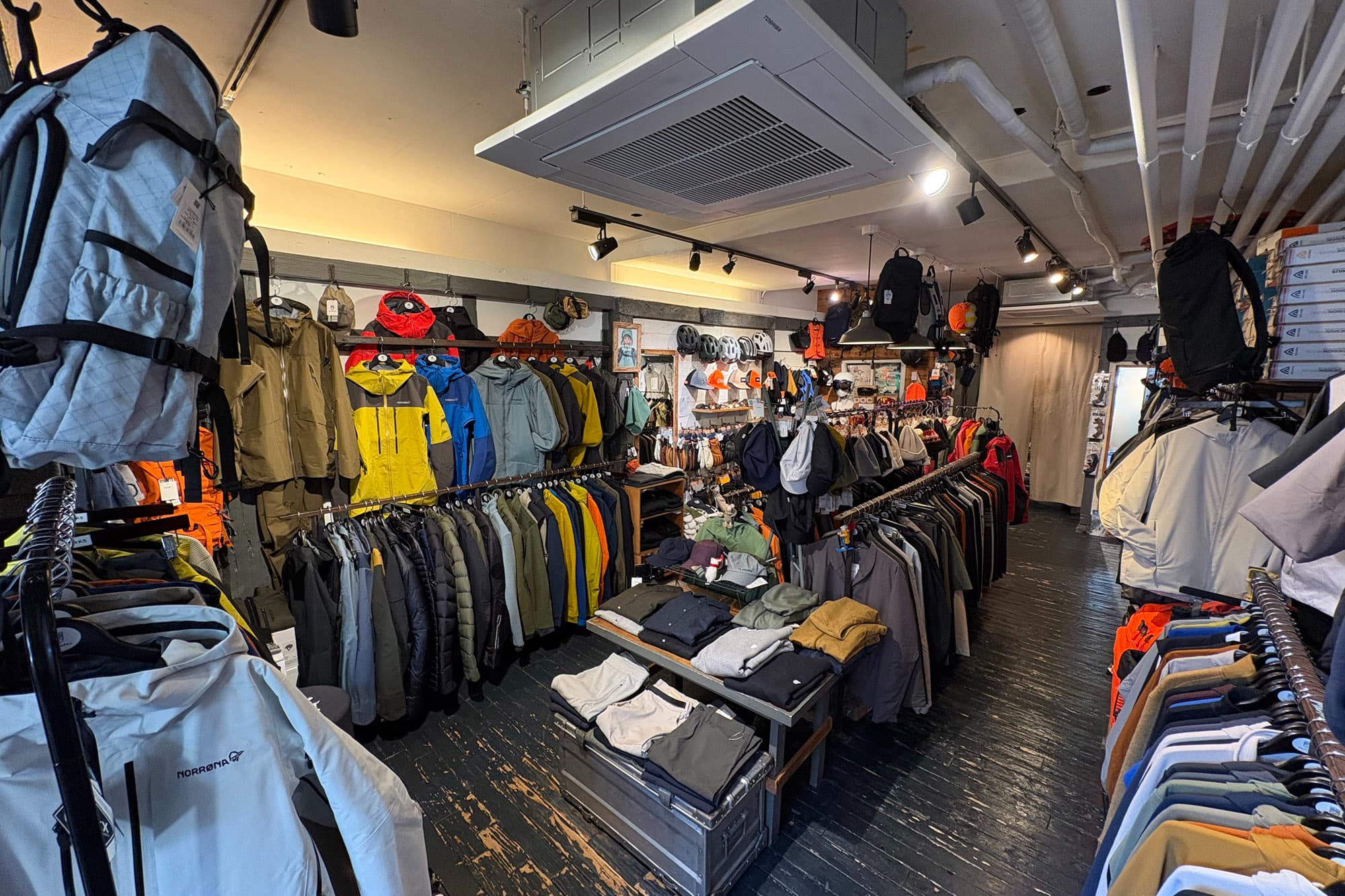 機能的な北欧ブランドを中心に、個性豊かなアイテムを取り揃えております。ウェアの販売だけにとどまらず、京都の自然を活かしたフィールドでの活動も積極的に行っています。初心者の方でも安心してご参加いただけるハイキング「朝会」や、冬季はスキー・スノーボードなどのイベントを通じて、実際に自然の中でウェアや道具を使い、その魅力や使い方を体感いただける機会を提供しています。スタッフ自身も日々フィールドでの経験を重ね、その実体験を基に、お客様一人ひとりに寄り添ったご提案を心がけています。はじめての方から経験豊富な方まで、また京都内外の自然や山の情報、アウトドアライフにまつわる様々な情報交換の場としても、ご活用いただけますと幸いです。