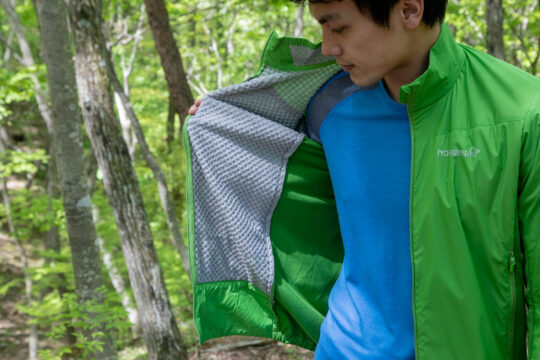 表面生地はPERTEX®を使用し、しなやかで軽量ながら防風性があります。