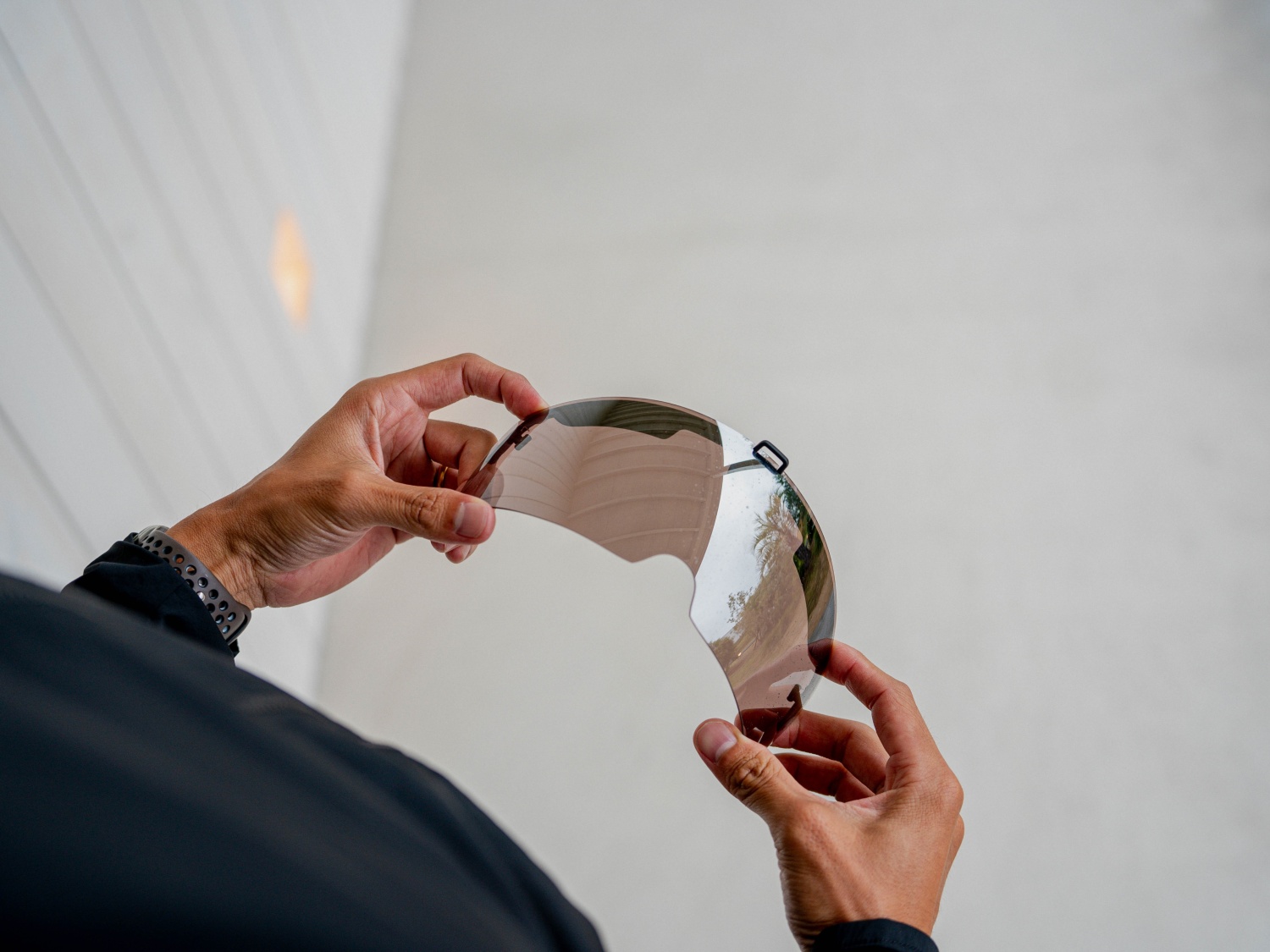 レンズは後頭部にもマグネットで簡単に付けることができ、レーススタート時までの待ち時間などレンズの曇りが心配な場合やレース後などもノンストレス。