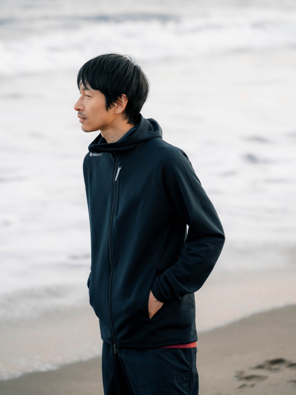 HOUDINIが展開するフリースの中では薄手の部類に入り、数あるモデルの中で最も活用範囲の広いモデルです。