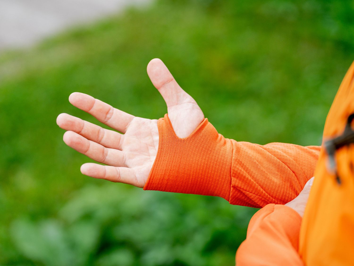 非常にフィット感の高い、袖口のサムホール。