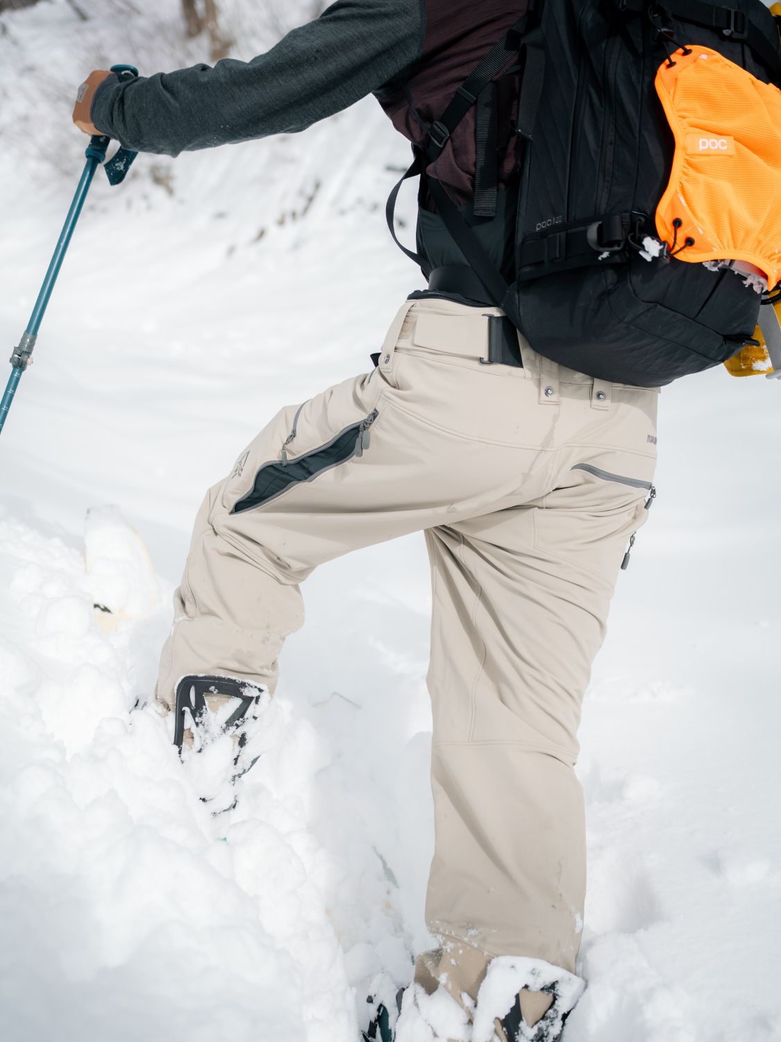 今シーズン冬前半の、暖かく湿雪が降る日のリフトなどでは、お尻と膝部分に防水メンブレンが入っているとはいえ、正直腿のあたりが染みてしまいました。