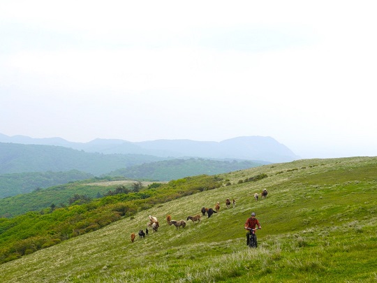 <自転車で山を走るダートトレイル。下りはバックカントリーに近い感覚>