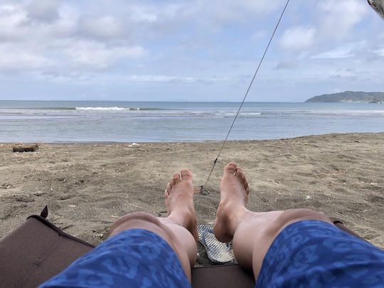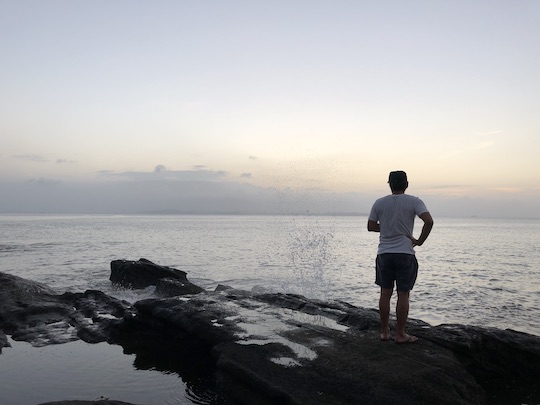 ここも台風の時には、波が立つビーチだけど、朝起きるとnobady 。期待に反して、波なし。