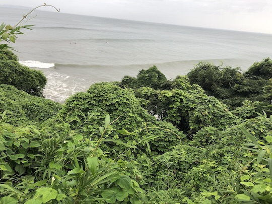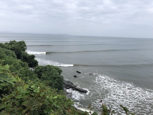 ここは、崖に沿ってリーフにヒットして波が割れる。本当に良い時は、300〜500m、それ以上?になるらしい。