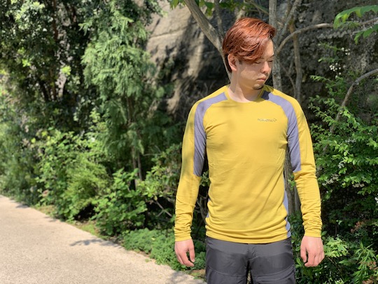 個人的にはベースレイヤー使いが好きですが、もちろんこれくらいのサイズ感でTシャツとして単体での着用もオススメです。