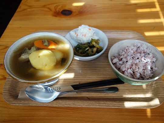 初めて食べたビルマ汁、あっさりかと思ったらしっかりした出汁とカレーのピリ辛が相まった僕好みの味。疲れた身体が復活!