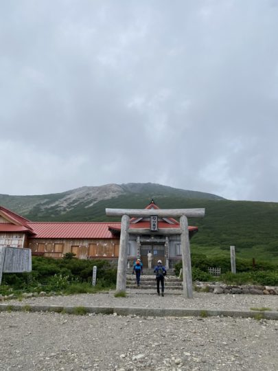ここまで約4時間。水場が全くないルートだったので水を節約しつつ登っていたので…というか足らない状態だったので白山の美味しい水をたらふく飲んで御前峰に。境内の裏から登ります。