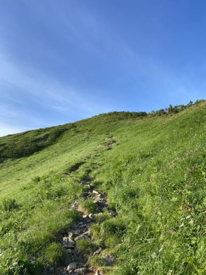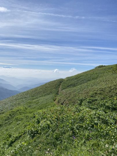 観光新道からは背を超える樹々がないので直射日光が暑い。案の定日焼けがヤバかったです…