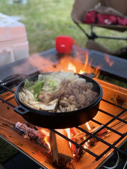 友人が前日に大阪の能勢まで行って仕入れてくれた鶏肉はマジで美味!ホンマに感謝です。 ( キャンプですが鍋率が高い )