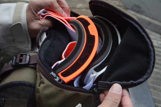大きめのゴーグルポケットはゴーグル2個が余裕を持って入るサイズ。