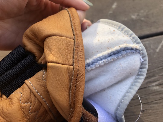 手の甲に当たるところは起毛しているのでとっても暖か。