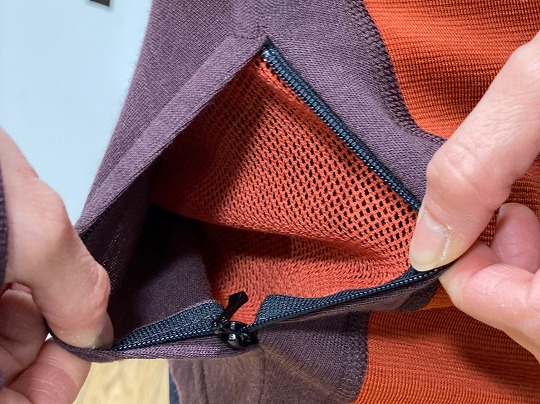 メッシュポケットになっていて、ベンチレーションも兼ねています。