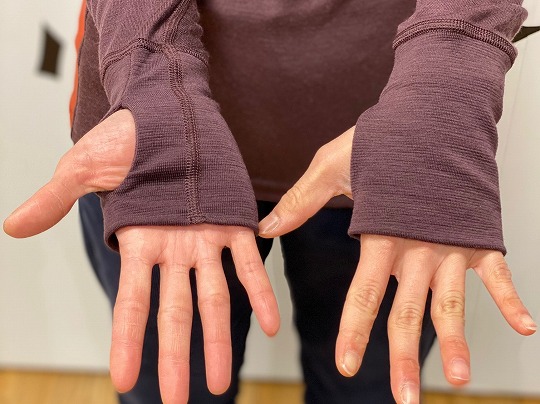 冬の低い気温の中でも、身体は汗をかいていますが、ベースレイヤーが濡れて冷えてしまうと、体温が下がってしまいます。