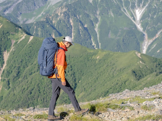 トレッキングはもちろん、クライミング要素を含むマウンテニアリングも想定して開発されているため、もたつきのないすっきりとしたシルエットです。