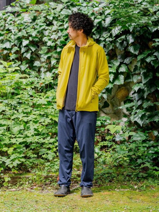 ジャストサイズで履けばきれいなシルエットですが、見た目以上にリラックスした履き心地を得られる不思議なパンツです。