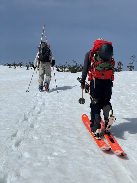 板しょって、スノーシューしょって、アイゼンで歩く!笑