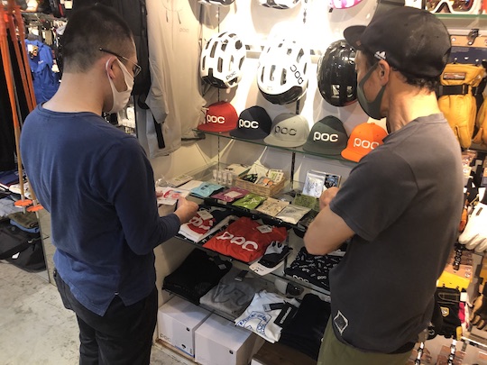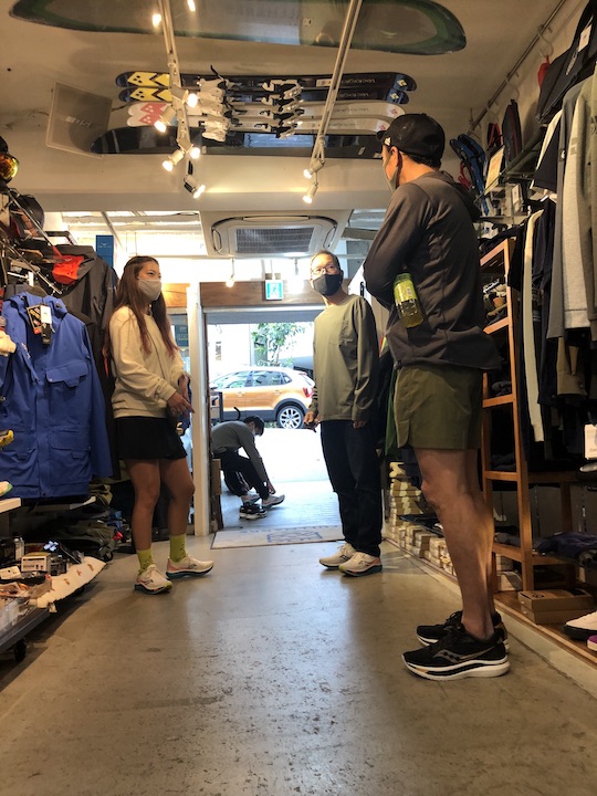 生憎の天気の為、シューズの展示はこんな感じでしたが、遊びに来てくれた方々には店内で試履きして頂けました。