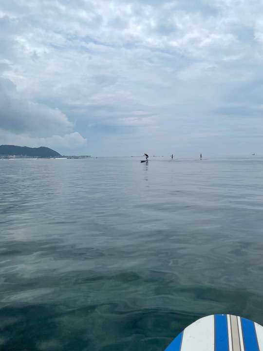 見ての通り、潮が引ききってる時間帯。恐る恐る沖へパドル。