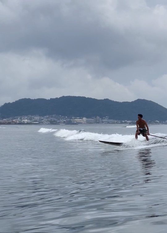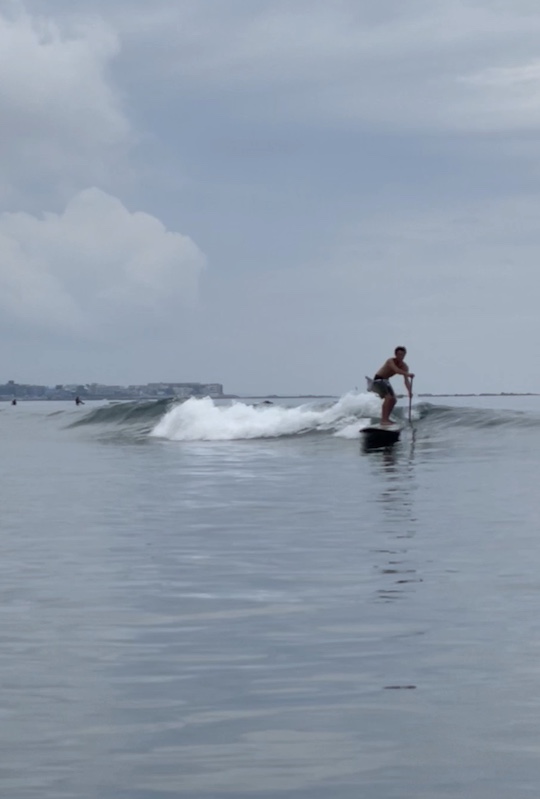 クルージングと言うよりは、結果波乗りの練習。これが、サーフィンとは違ってSUPも難しい。でも楽しい!