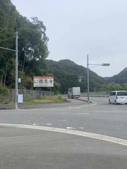 根来寺の看板。和歌山県出身の僕はこの道を車でよく通ったし馴染み深く懐かしい。ゴールまでもうひと頑張り!