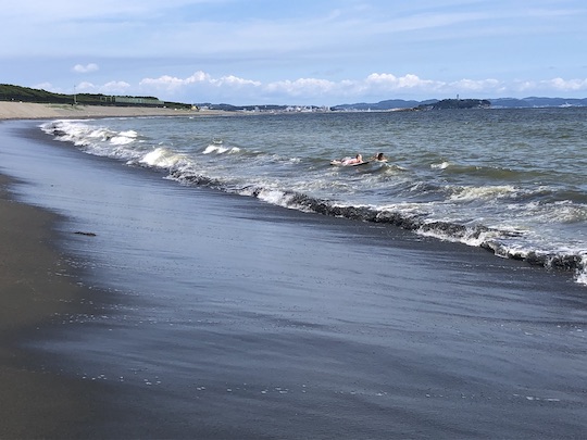 ビーチも裸足では歩けない暑さ。でも、夏の海はやっぱり気持ちい。