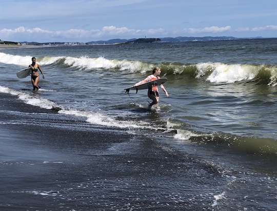 湘南エリアの海はぬるま湯。スイムウエアでサーフィンが出来る季節です。
