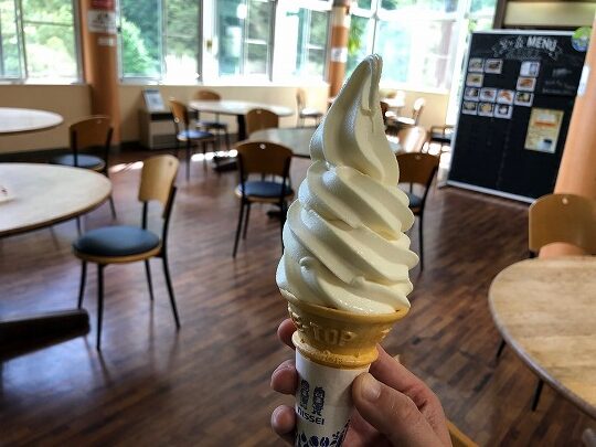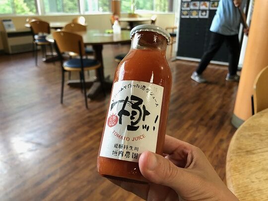 下山後は新穂高ロープウェイ新穂高温泉駅売店でソフトクリームとトマトジュース