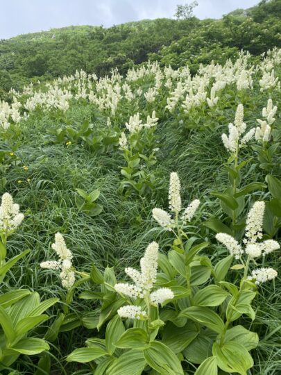 どんどん歩いていると今回の山行のハイライト!!コバイケイソウが群生していました。