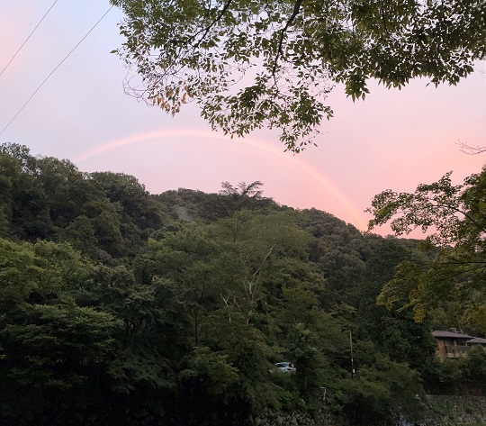 当日も「雨だよ~」という京都店こーへーさんの言葉を無視してこの虹!ピンク虹!