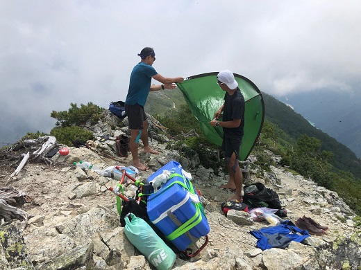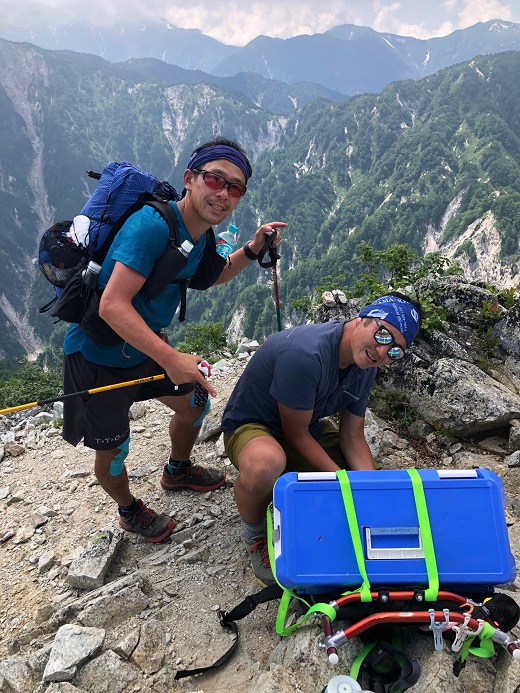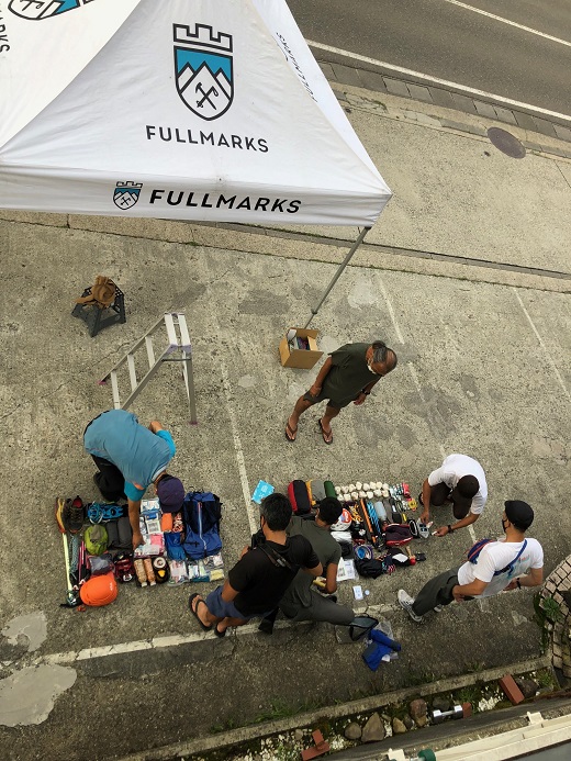 北アルプスのとんでもない縦走計画の荷物の確認をお店の前で行いました。