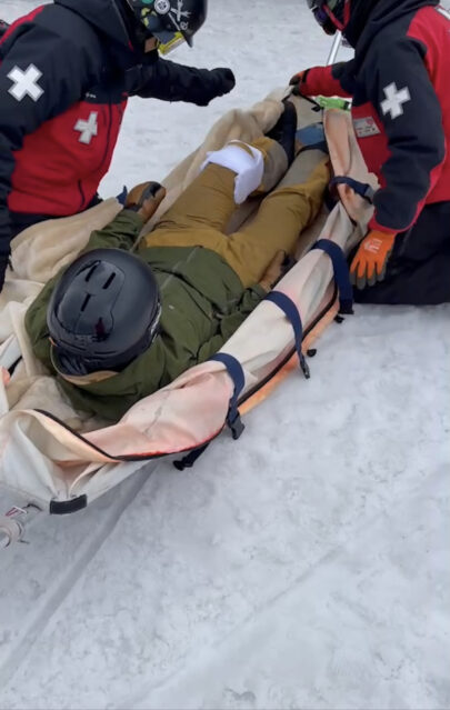 朝一スタートで2本目滑っている時に人と衝突してしまい膝を骨折。このブログがアップされる頃も間違いなく病院のベッドの上でしょう。。