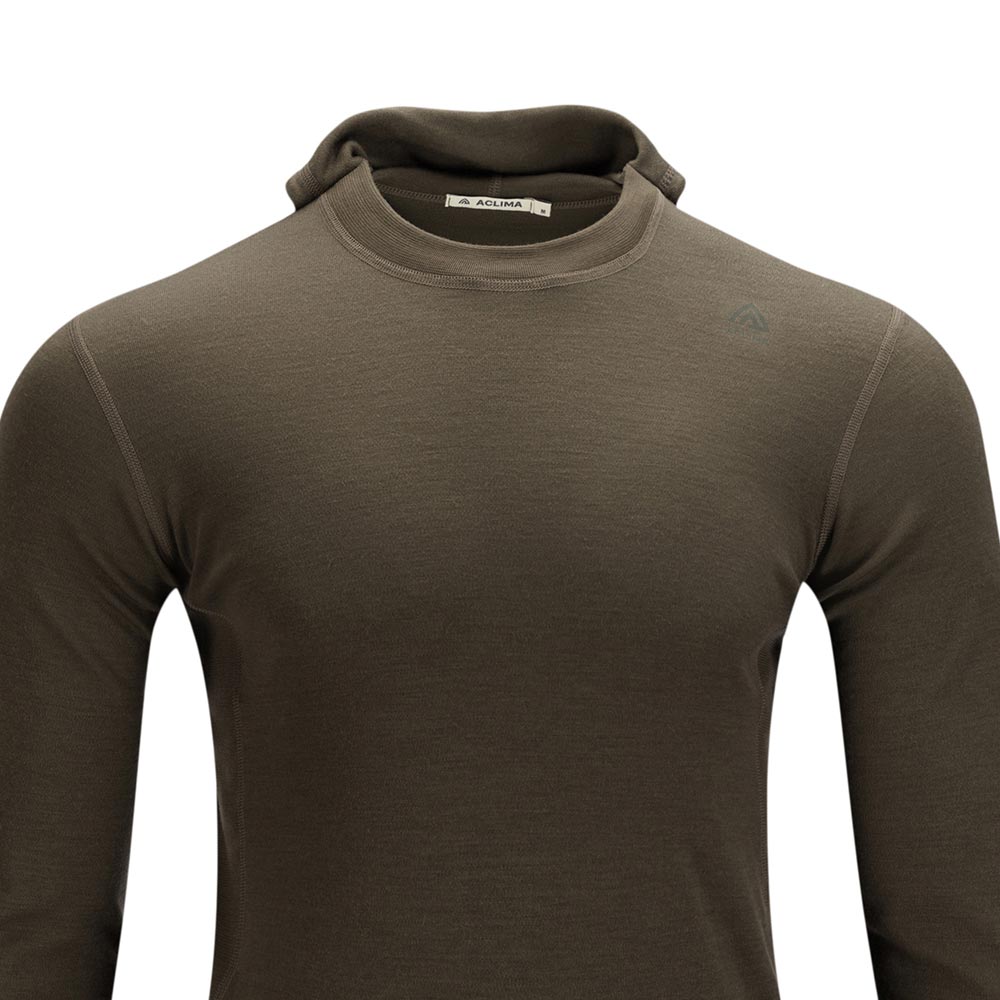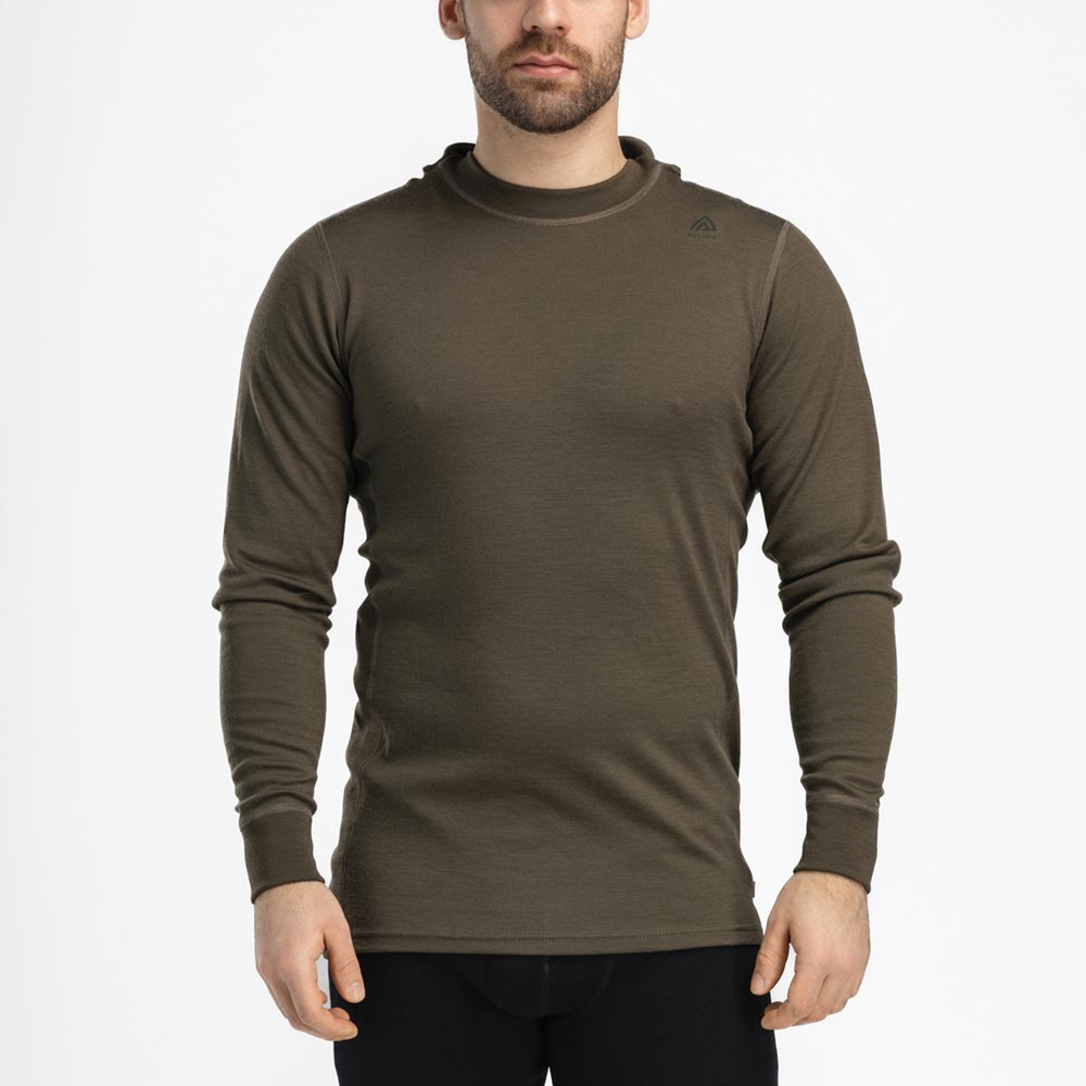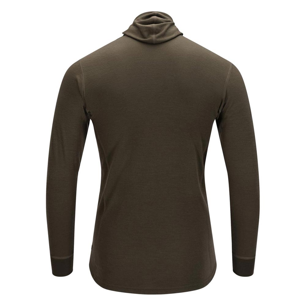 ラウンドネック、ハイネックのスタイルに加え、目出し帽で頭全体を覆うことができる 3 通りのフード機能を備えたウール セーターです。 ナローフィットで、寒い日のベースレイヤーとして適しており、サイドのリブパネルが快適さと動きやすさを向上させています。