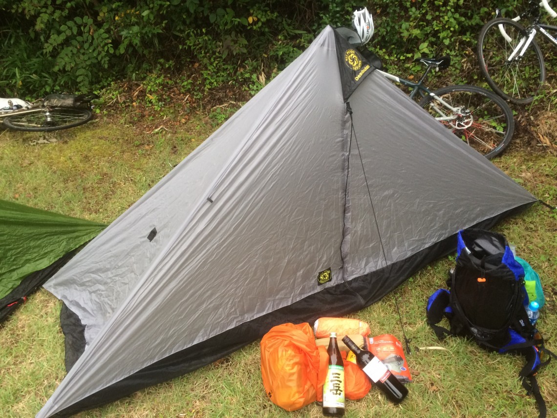 残念ながら天候は思わしくなく、夜から朝にかけてはかなり強い雨が降りました。僕のツエルトは天井の縫い目から漏水しちょこっと濡れちゃいましたが、これもまた経験としていい勉強になりました。