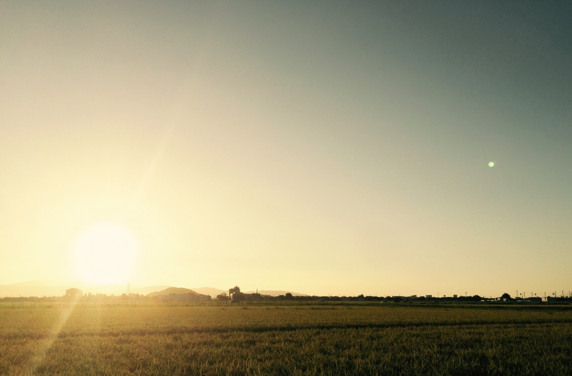 先輩が生まれて見てきた夕陽はオレンジ色が田畑に反射し稲が黄色に輝くとてもきれいな景色でした。