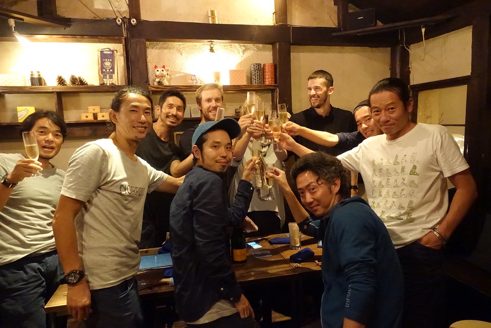 先週9月22日からHOUDINI本社より社長のEva、デザイナーのJesper、セールスのJosefの3名が来日。セールスマネージャーとしては25日の最終日までびっちりアテンドいたしました。23日はFULLMARKSオフィスにて商品説明とディスカッションを行いました。今後、希望する商品について伝えたり、今の商品の改善してほしい部分など結構細かく話が出来たので次のコレクション発表が楽しみです。当然ながら、打合せのあとは野毛で呑みなわけですが、二軒目へ移動する途中にJosefに国際山岳ガイドの合格通知のメールが届いたことにより、一同、大盛り上がり!二軒目ではシャンパンやらワインやら、しこたま飲みまくって当のJosefは記憶を無くしたとのこと。笑