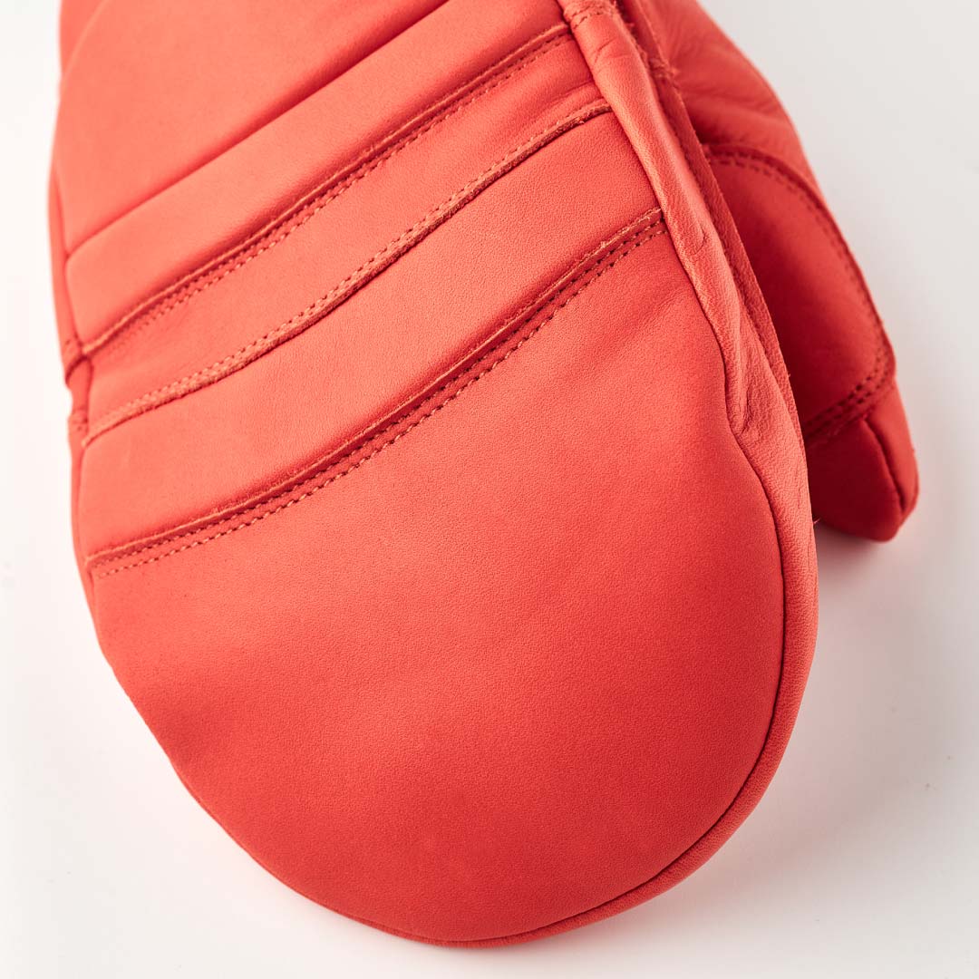 スウェーデンの女性アルペンレーサーの要望で生まれた、ユニセックスのフルレザーグローブ。2023年にフルモデルチェンジし、レーシングモデルとしての名残を残すナックル側の衝撃吸収パッドとジャバラ形状を取り去り、よりオールラウンドに使えるフルレザーグローブに進化しました。また、ライナーは取り外し式に変更。先に消耗するライナーを交換することで、一つのグローブを長く使ってもらいたいという意図です。ライナーはHESTRA定番の5本指のパトロールライナー。独自のポリエステル中綿G-Lolf入りで、高い保温力を発揮します。新色のアーモンドホワイトのみゴート(山羊)レザーで、環境に優しいクロームフリーでなめし加工されています。ほかは高い精度でなめされたしなやかな牛皮革製です。