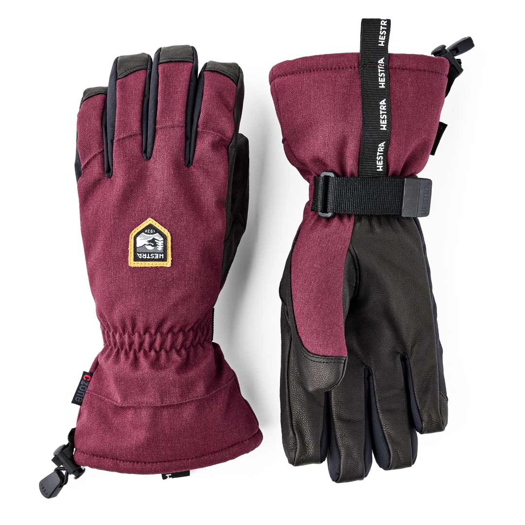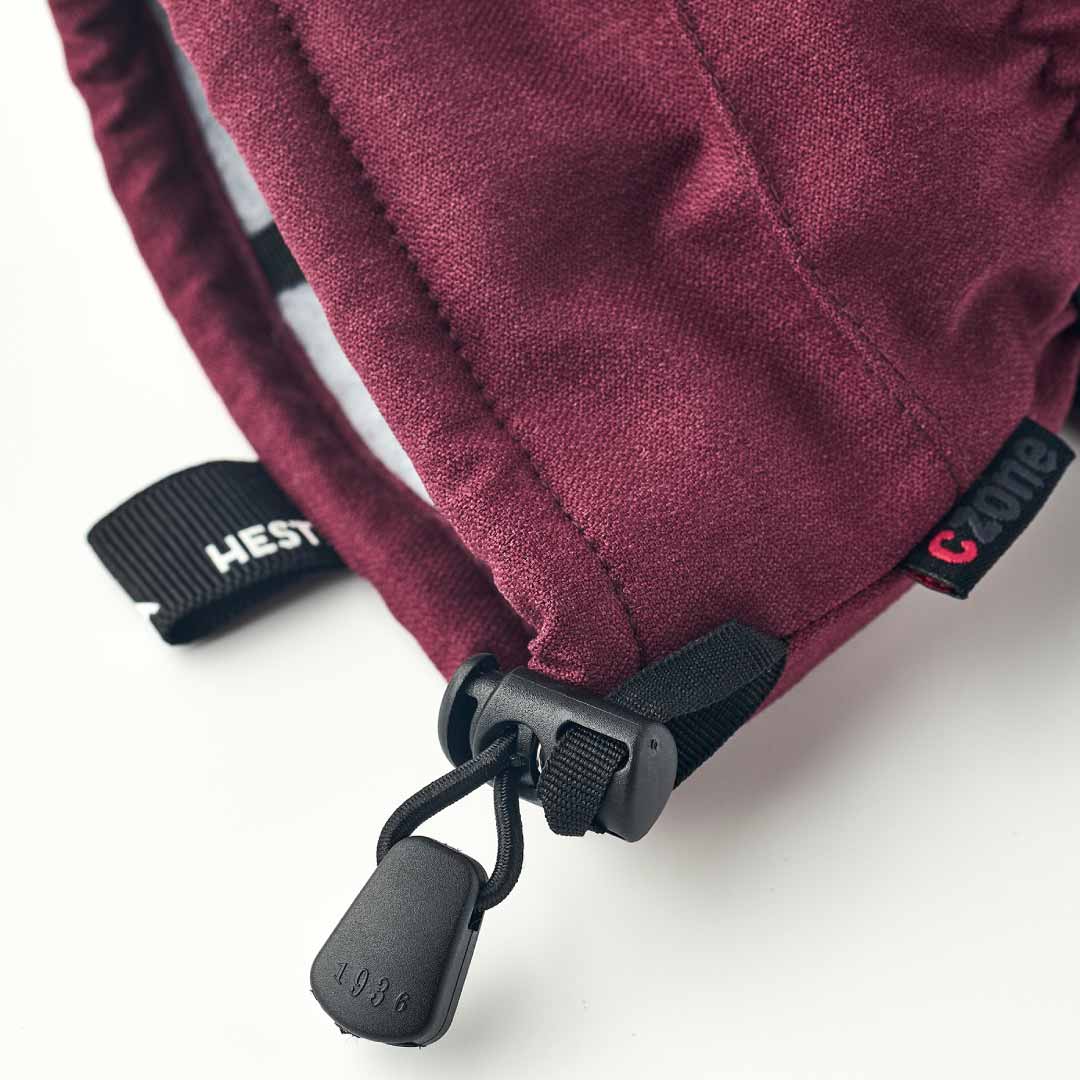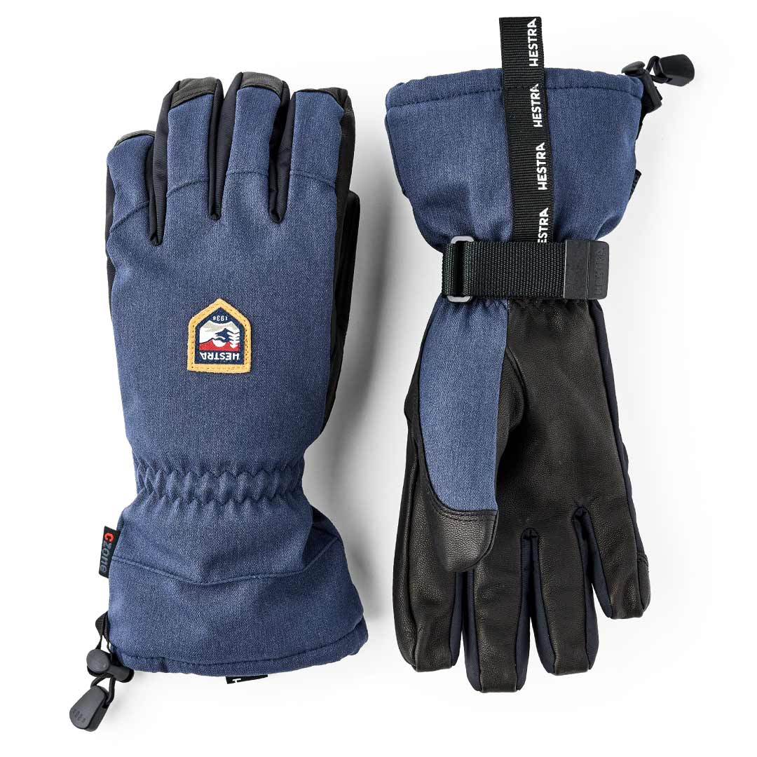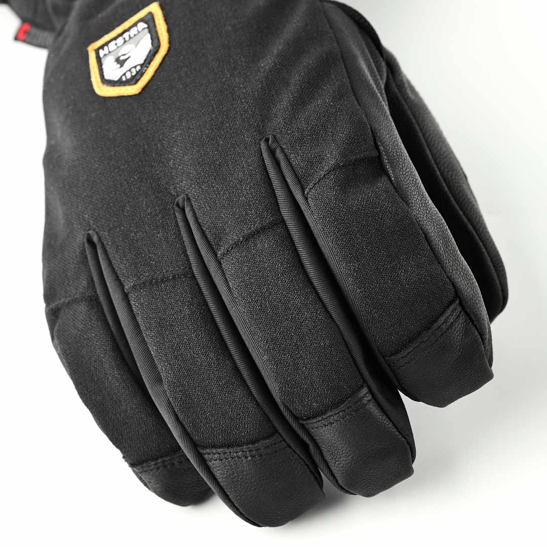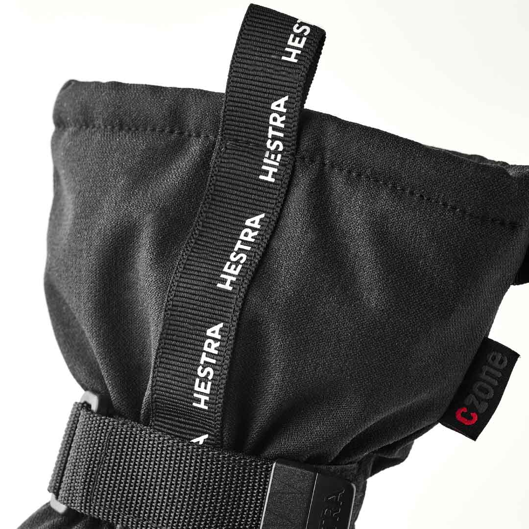 パウダーライディングに最適なHESTRAの人気定番「Heli Ski」シリーズと共通するスタイルを持つライトウェイト5フィンガーモデルです。手のひらはポールをしっかりグリップするゴートレザー(山羊革)で、カフから甲、指の外側はポリエステルファブリックで軽さと柔軟性を求め、防水透湿性メンブレンCZoneをインサートして防水性を持たせています。長めのカフとドローコードのスノーロックが、滑走中の粉雪の浸入を遮断します。ポリエステル製のライナーは取り外しのできない固定式。カフの長い「Heli Ski」のようなスタイルを気軽に使いたいという方に最適で、装着感もよりやわらかです。レザー部が少ないぶん、メンテナンスにも手間がかかりません。