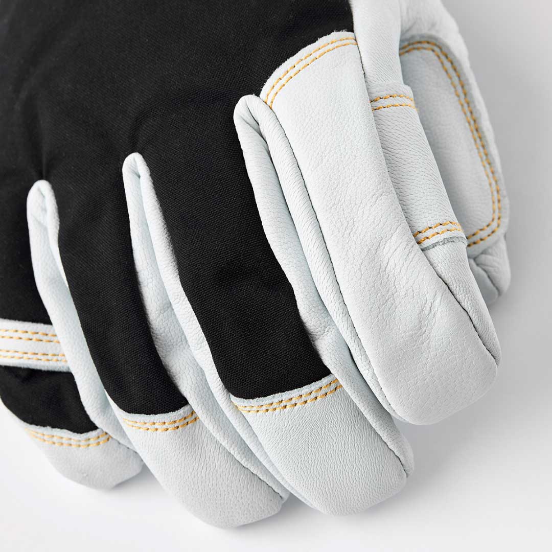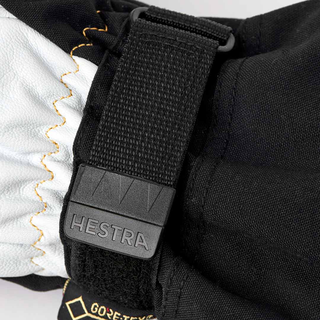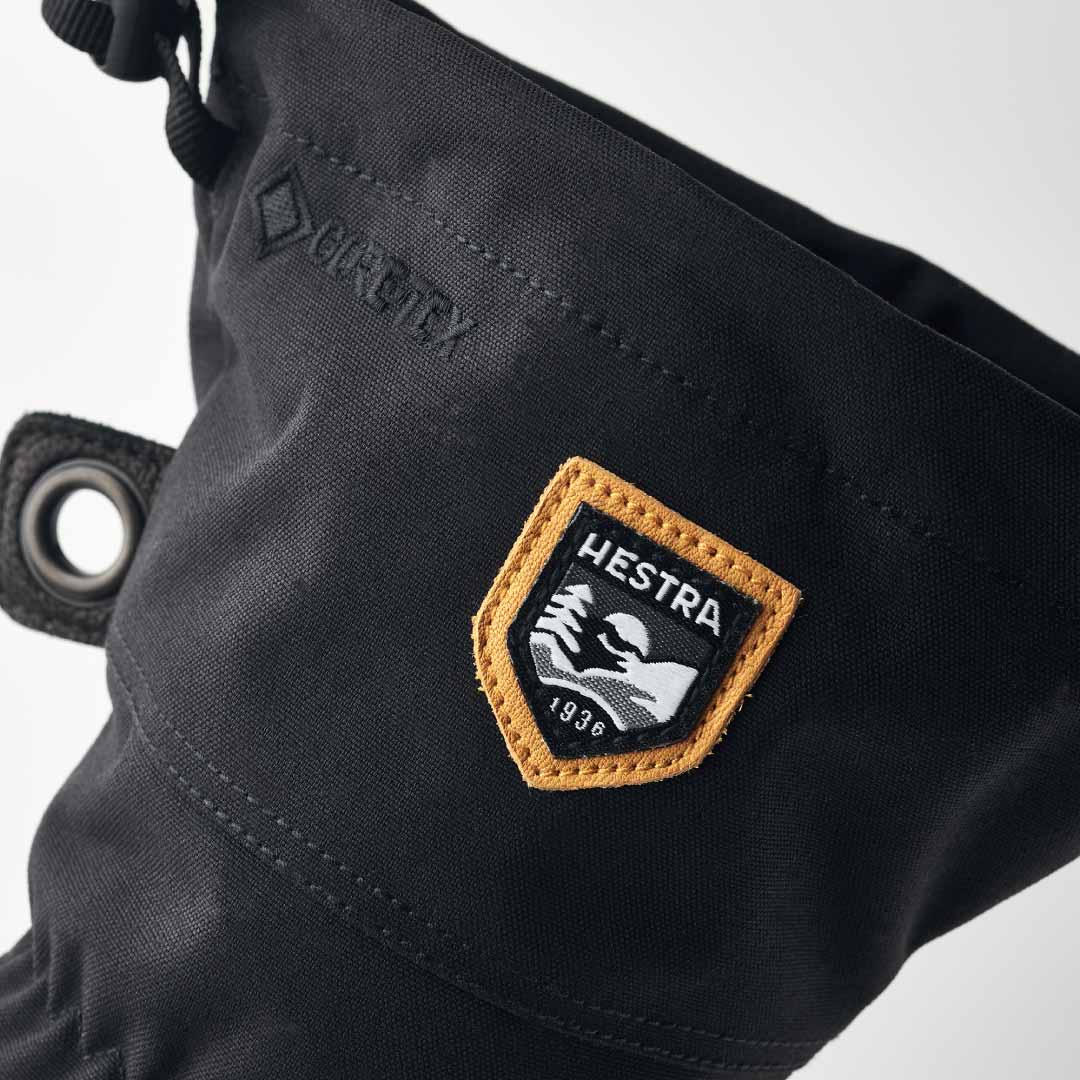 世界中のスキーガイドが愛用するロングセラー「Heli Ski」のデザインと機能をそのままに、環境に配慮したePEメンブレン採用のGORE-TEXをインサートした完全防水の5フィンガーモデルです。手のひらから指先は耐久性と強度に優れたゴート(山羊)皮革、表側から手首全体はナイロンファブリック、中綿は暖かなG-Loftポリエステル、ライナーは取り外し不可の固定式です。毎日の使用にもへこたれない丈夫さと、タイトな操作性を維持しつつ、グローブ全体の軽さが際立ちます。長めのカフは、ウエアの袖口ごと包み込んで装着してベルクロ留めするタイプ。薬指のカラビナループは降雪中にぶら下げてもグローブ内部が濡れない仕様。一時的にグローブを外しての作業に便利なハンドカフとカラビナ付きです。