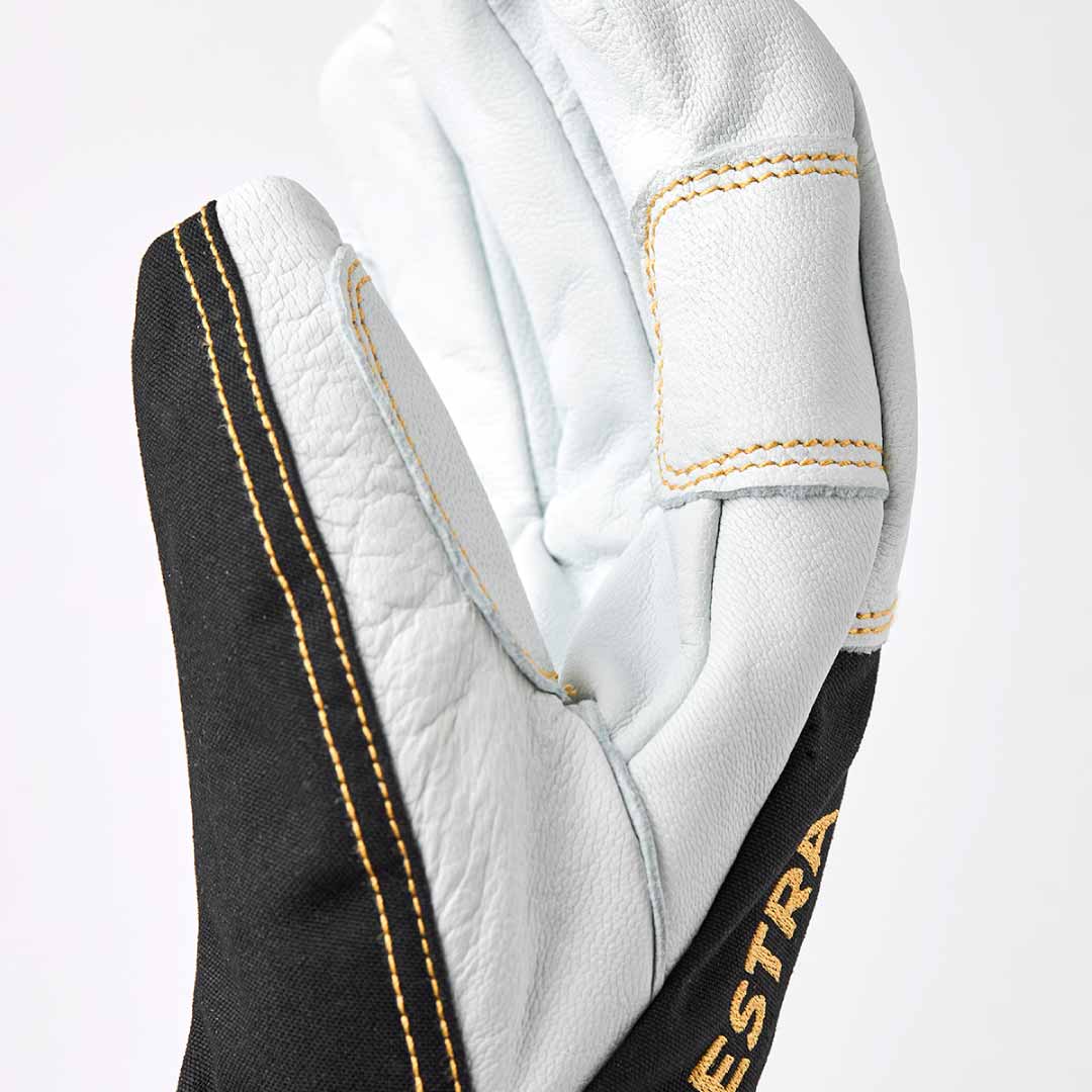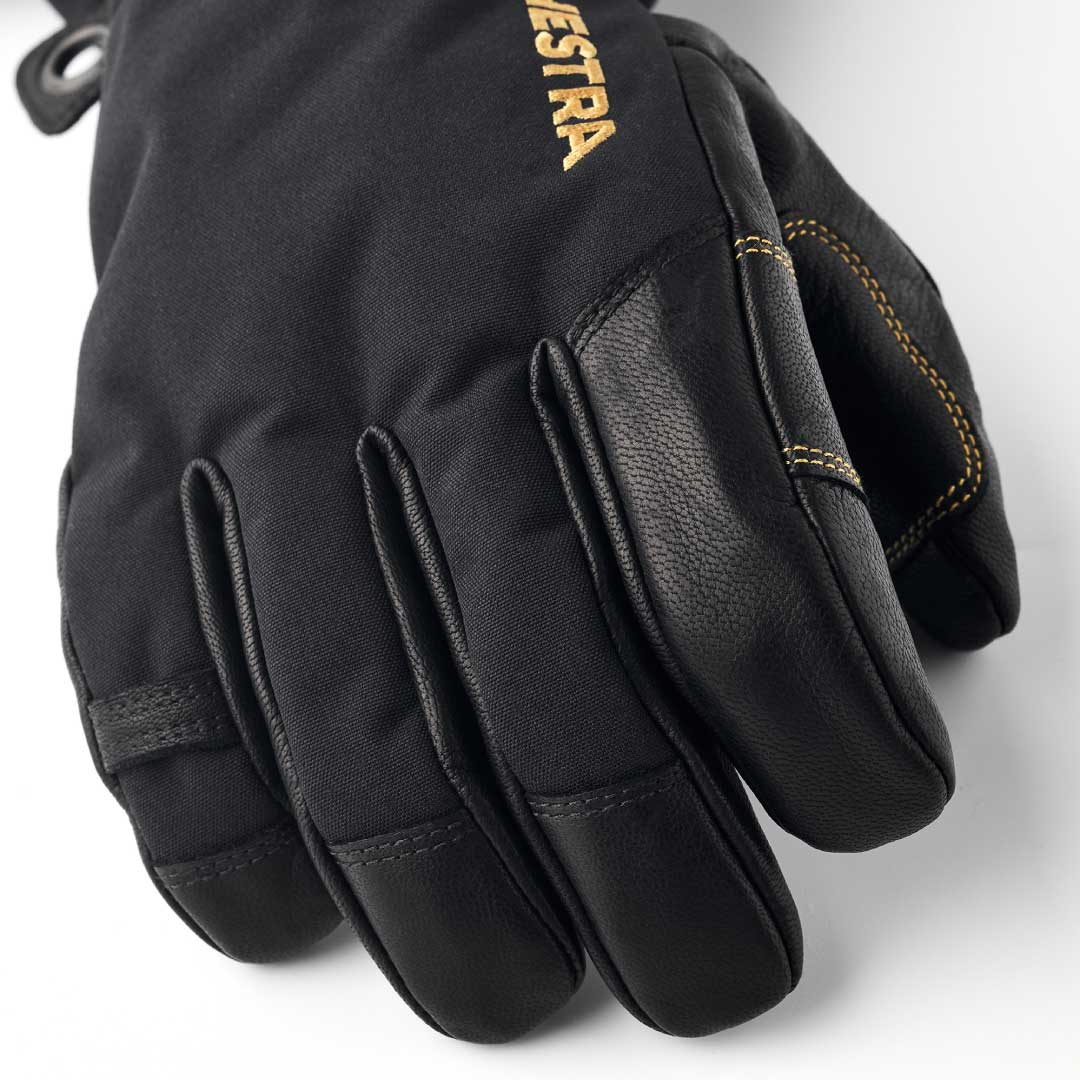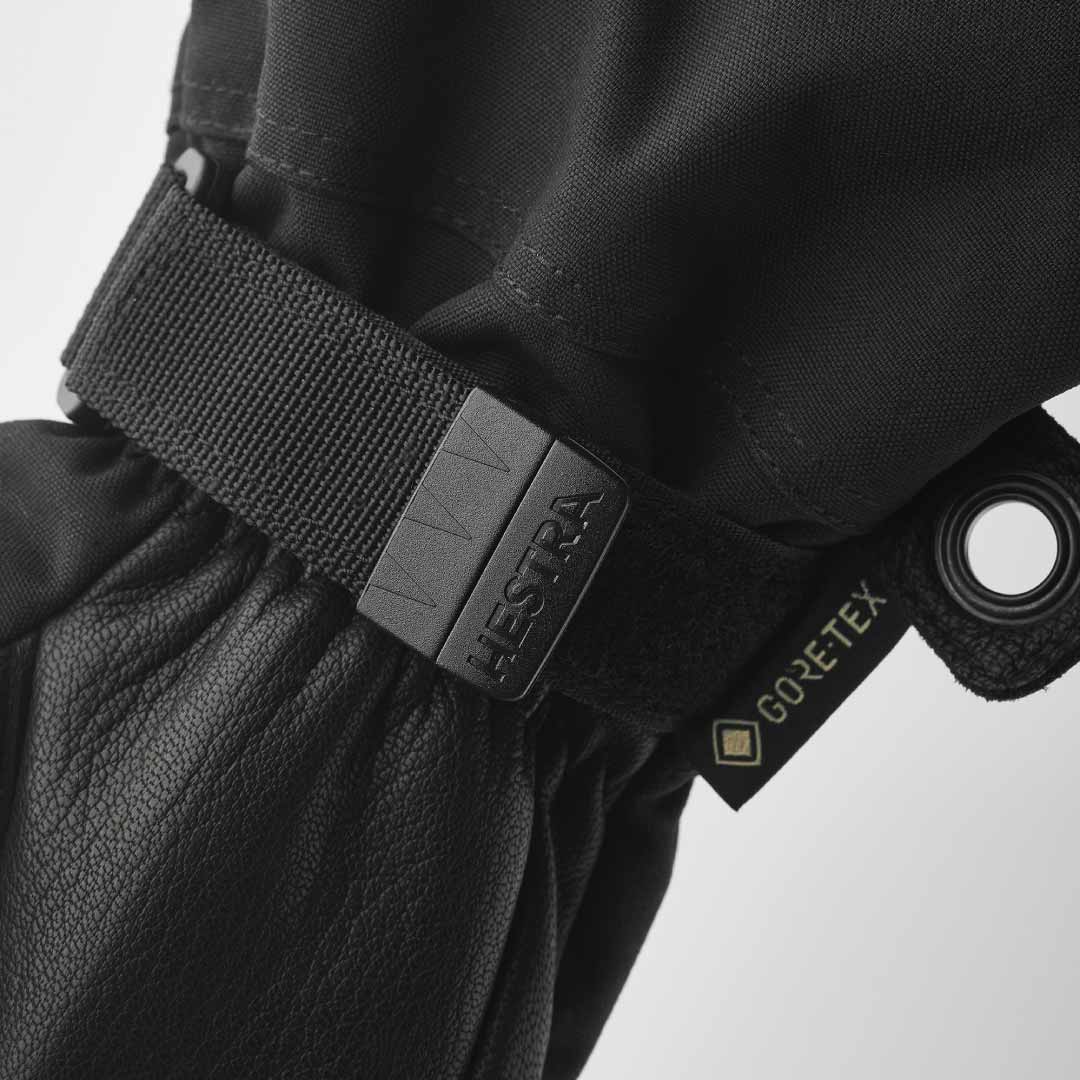 世界中のスキーガイドが愛用するロングセラー「Heli Ski」のデザインと機能をそのままに、環境に配慮したePEメンブレン採用のGORE-TEXをインサートした完全防水の5フィンガーモデルです。手のひらから指先は耐久性と強度に優れたゴート(山羊)皮革、表側から手首全体はナイロンファブリック、中綿は暖かなG-Loftポリエステル、ライナーは取り外し不可の固定式です。毎日の使用にもへこたれない丈夫さと、タイトな操作性を維持しつつ、グローブ全体の軽さが際立ちます。長めのカフは、ウエアの袖口ごと包み込んで装着してベルクロ留めするタイプ。薬指のカラビナループは降雪中にぶら下げてもグローブ内部が濡れない仕様。一時的にグローブを外しての作業に便利なハンドカフとカラビナ付きです。