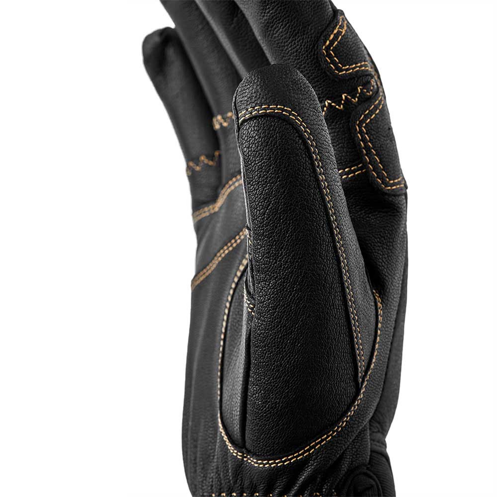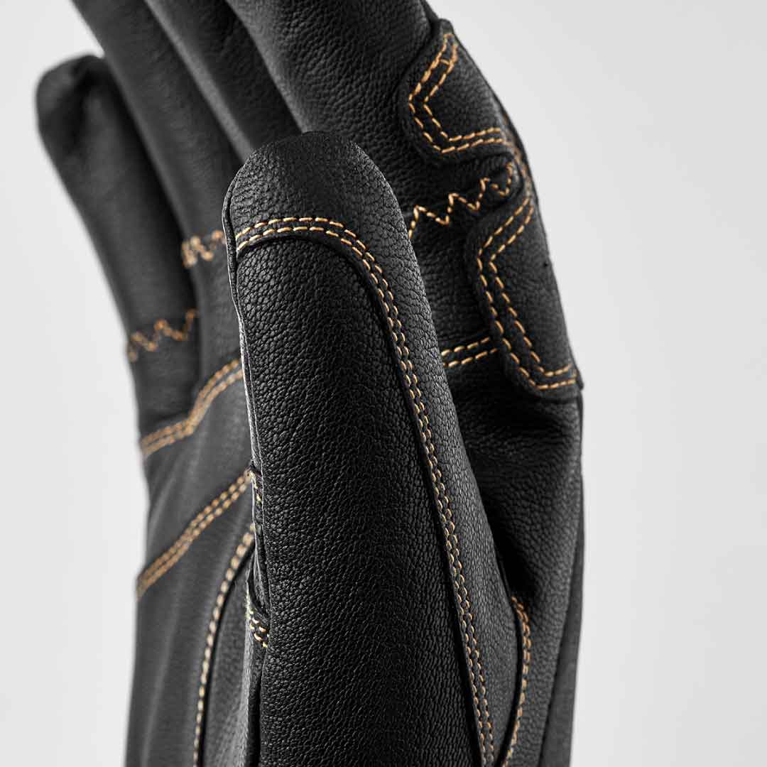 パターンニングと立体裁断で装着感を高めたエルゴグリップ搭載モデルの中で、最も高い保温性を誇るグローブです。手のひらは耐久性の高い山羊革、表側はしなやかな牛皮革。化繊中綿入りです。