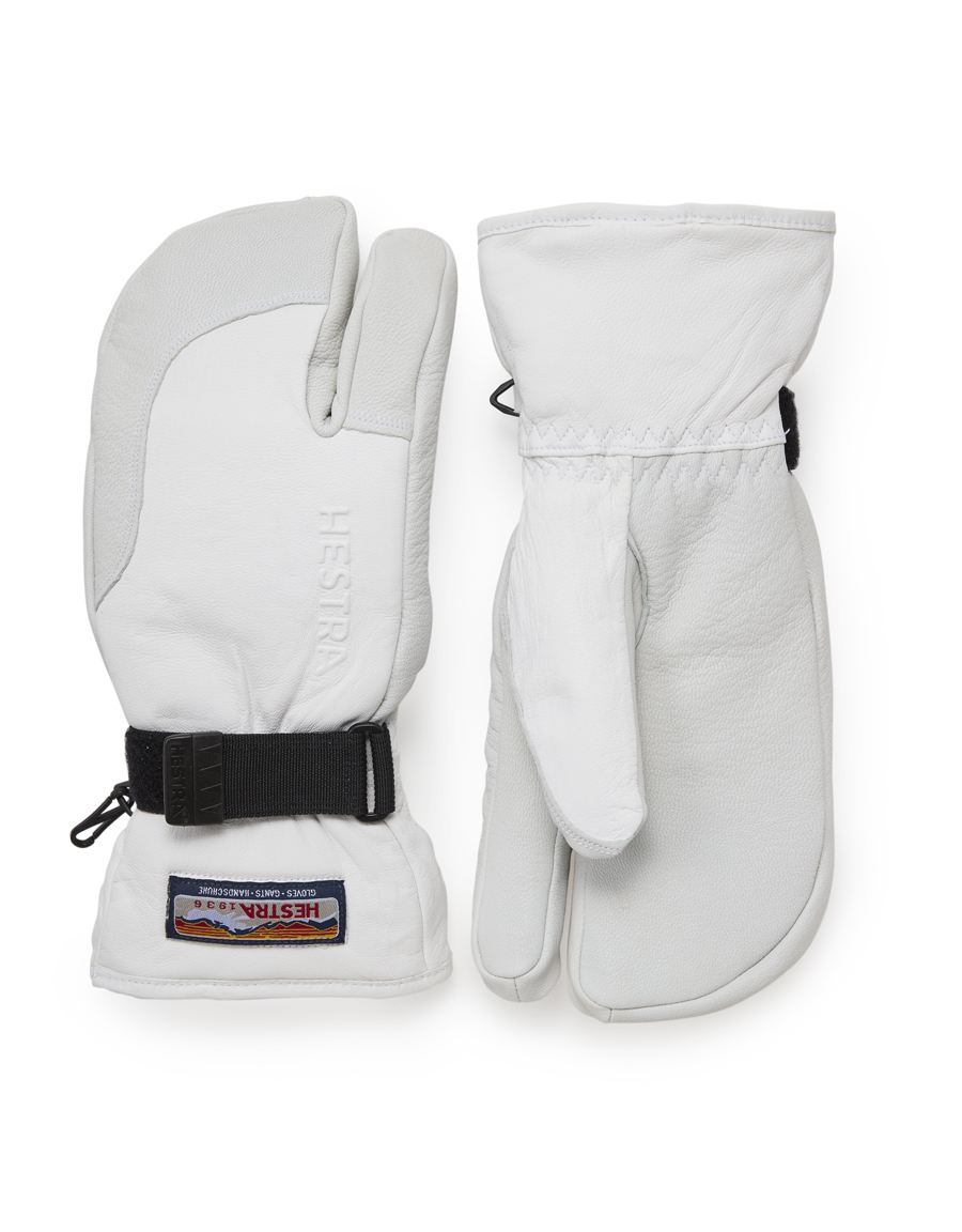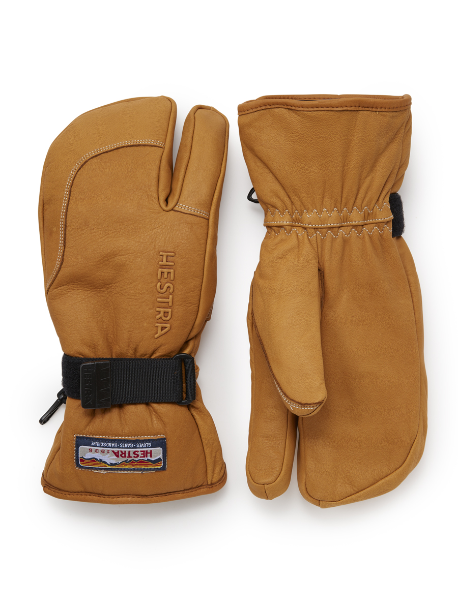 5本指グローブの操作感とミトンの保温力を兼ね備えた3フィンガーモデルは、厳冬期の雪山ライドになくてはならない存在。極寒の大雪山旭岳や吹雪の八甲田でも指先の冷えに悩まされることなく快適なライディングを約束します。ミトン形状ながら独立した人差し指によってスキーポールを難なく操作でき、中指から小指までの3本はそれぞれ独立したライニング仕様のため、高い保温力を維持しながらしっかりフィットします。HESTRAのフルレザー3フィンガーには使い勝手に応じて3タイプがあり、この「フルレザー」は安心感の高いレギュラーカフモデル。ウエアの袖口ごと包み込むように装着し、ベルクロ留めのコンプレッションを締めれば、雪や冷気の侵入を完全にシャットアウトします。素材は外側はやわらかな牛皮革、手のひら側はカラーによって強度の高いゴート(山羊)皮革と、しなやかな牛皮革があります。ポリエステルライナーは取り外しが可能です。