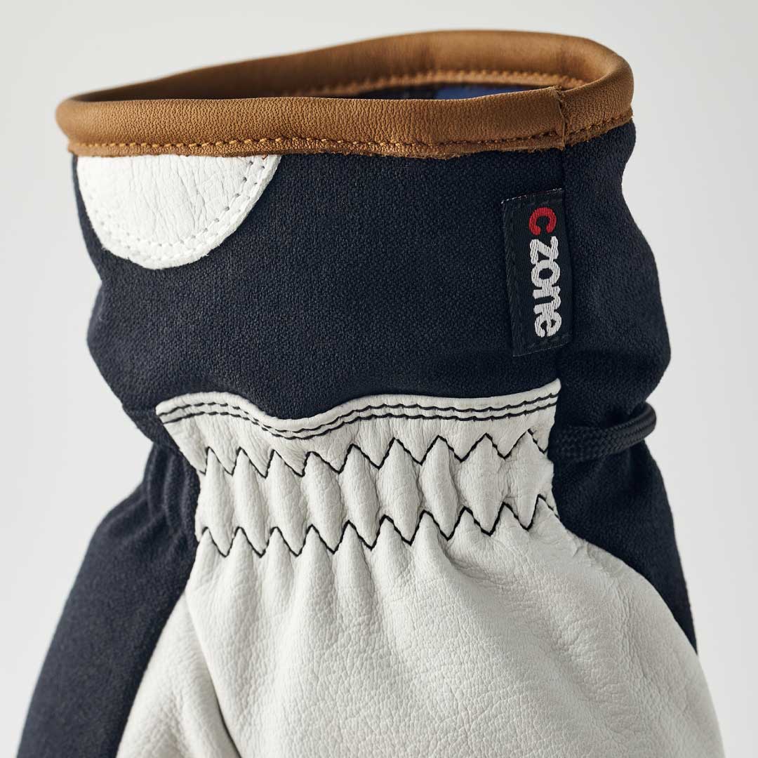 皮革と高機能素材を組み合わせたスタンダードなミトンモデル。耐久性がありながらもしなやかに鞣した山羊革と、表面が起毛したポリエステル生地を採用し、非常に柔らかくグローブ全体もソフトで軽い装着感に仕上がりました。オリジナルの防水透湿素材、CZoneがインサートされており、防水性、防風性、通気性にも優れています。ミトンの中は指が5本に分かれている構造です。