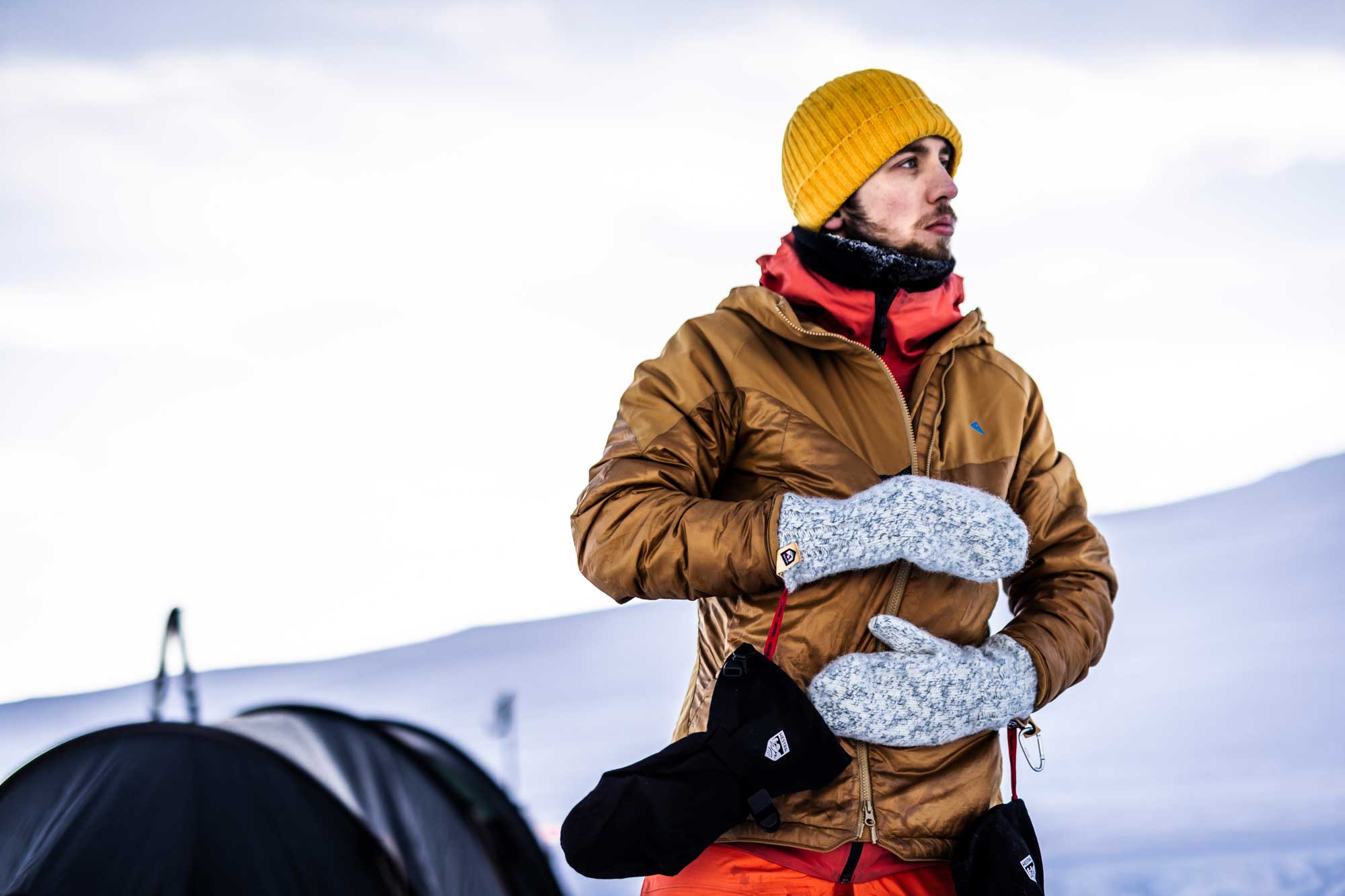 ウールならではの縮みやほつれを防止するために、あらかじめ熱湯内で撹拌したボイルドウールを使ったミトングローブ。フェルトに近い高密度に織られた生地は冷気の浸入を完全に遮断し、表面が雪にまみれても内部は温かさをキープします。晩秋から冬のフィールドの散策から、雪山ハイク、スノーシューとレッキングなどに最適で、テクニカルなグローブとは真逆を行くレトロクラシックなスタイルが目を引きます。