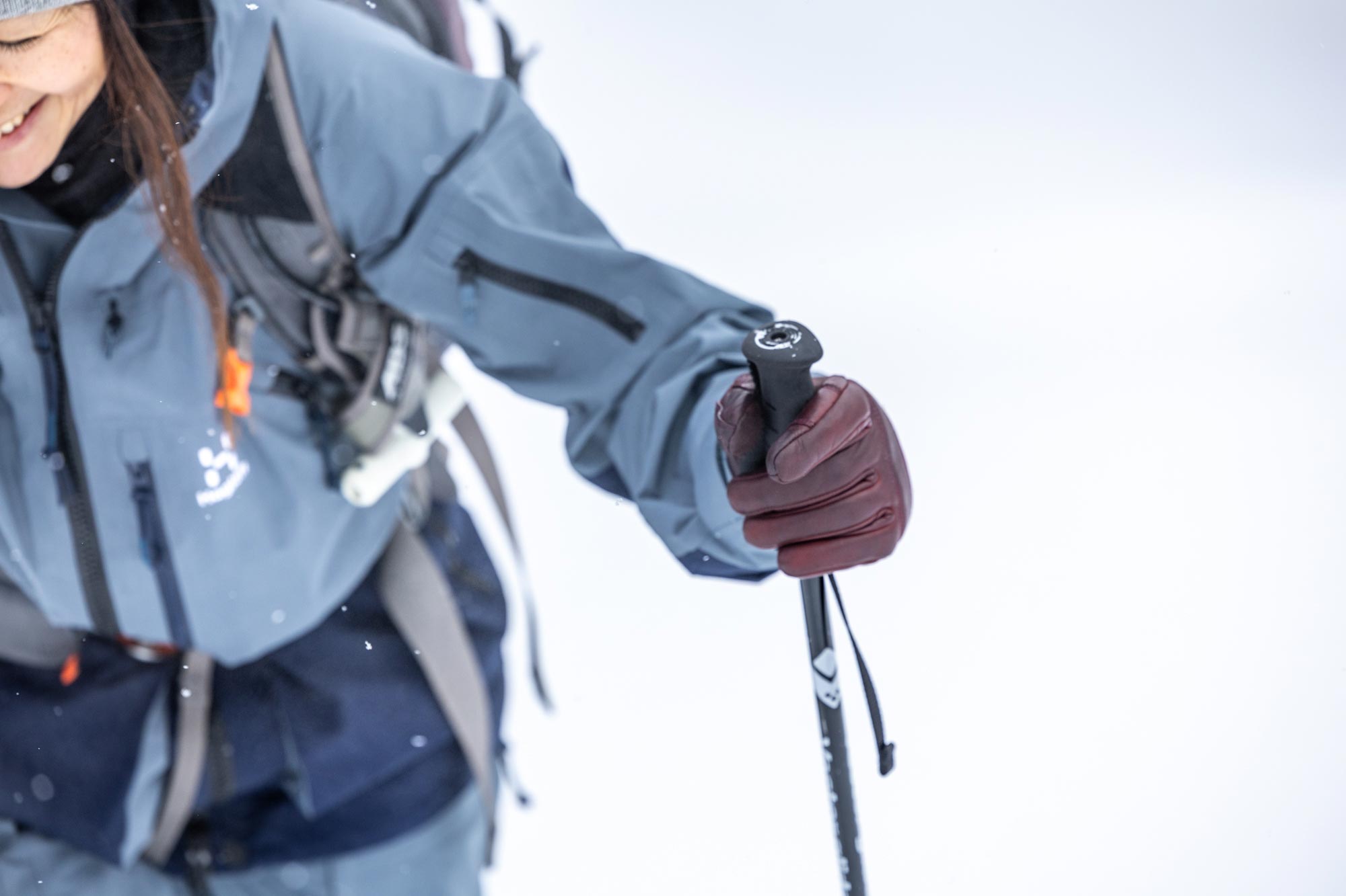 - デザインがシンプルなのでウェアに合わせやすい。グローブらしいデザインと、革の色と艶。ストックのグリップを握ったときの丁度良い握り感。そこから生まれる安心感が増えた。女性によくある手荒れが減った。厚手のグローブではないが、非常に寒い道北エリアで毎日使用できている。毎日使っていても穴が開くこともない。
