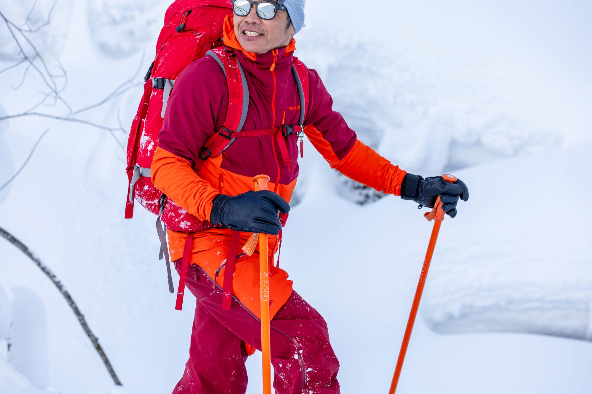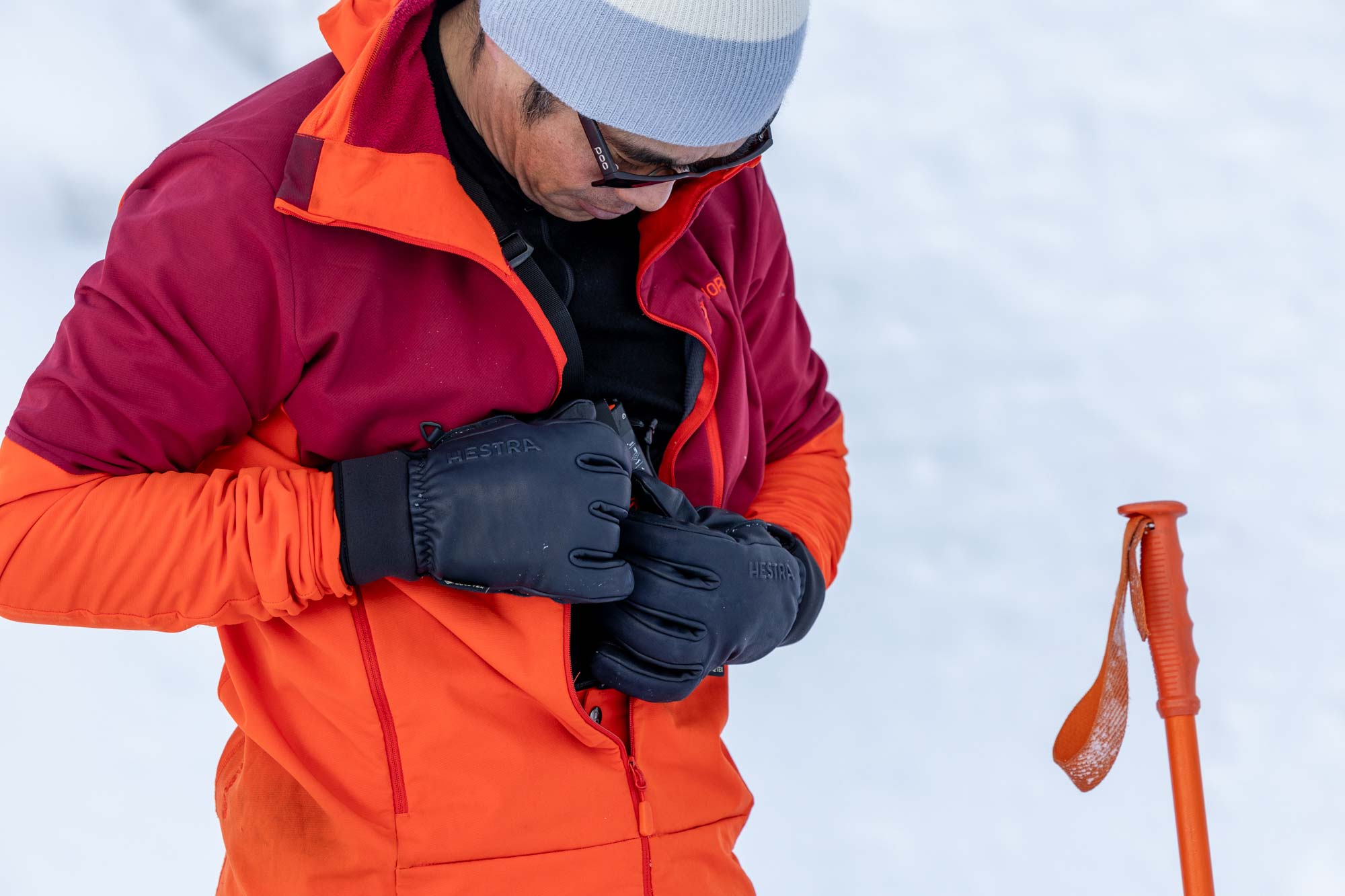 - 雪山登山オンリーであれば、化繊のオーバーグローブにウールのインナーグローブなどが間違いないが、繊細な指先感覚も重要なスキーでは、このシンプルで信頼性のあるグローブがおすすめ。